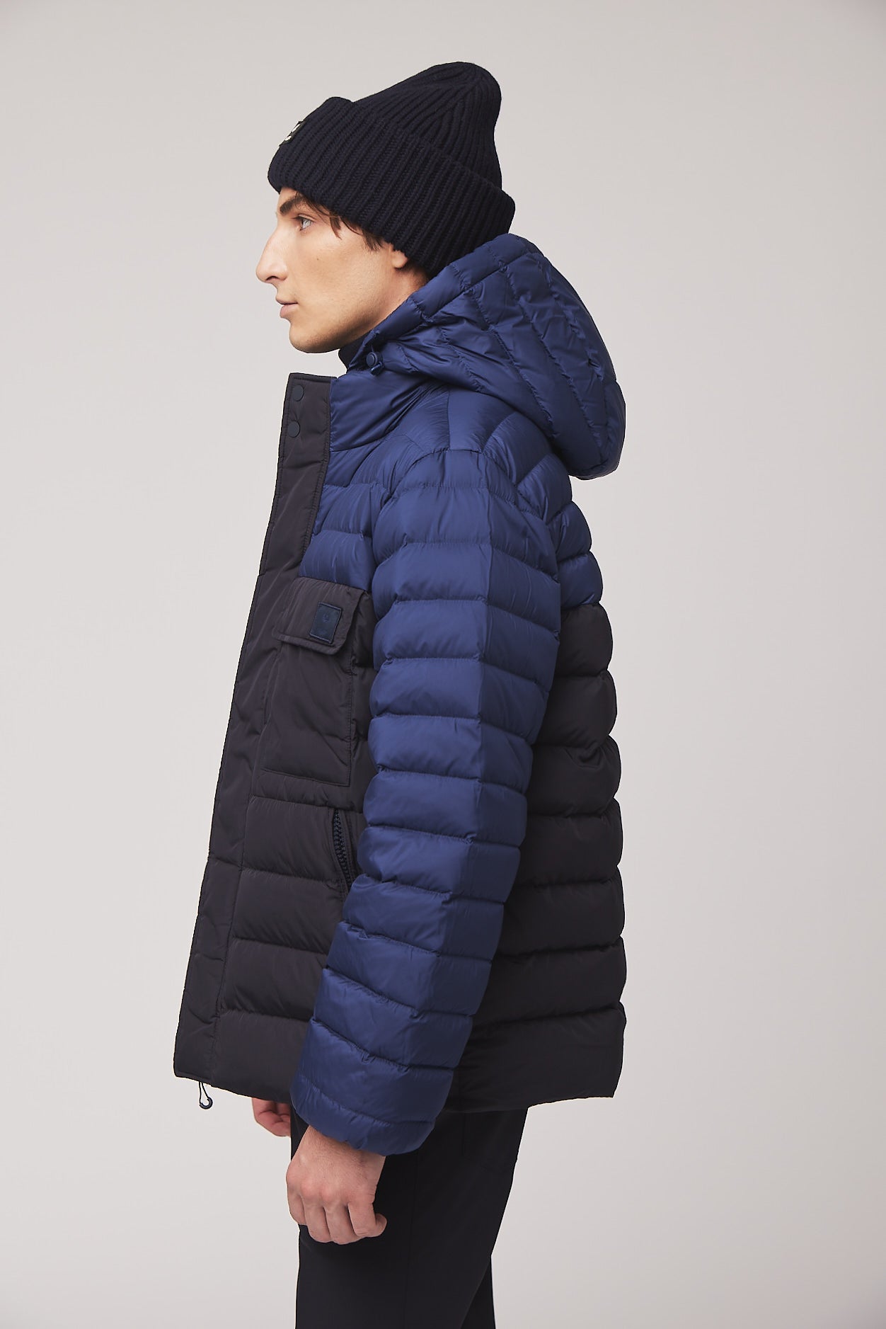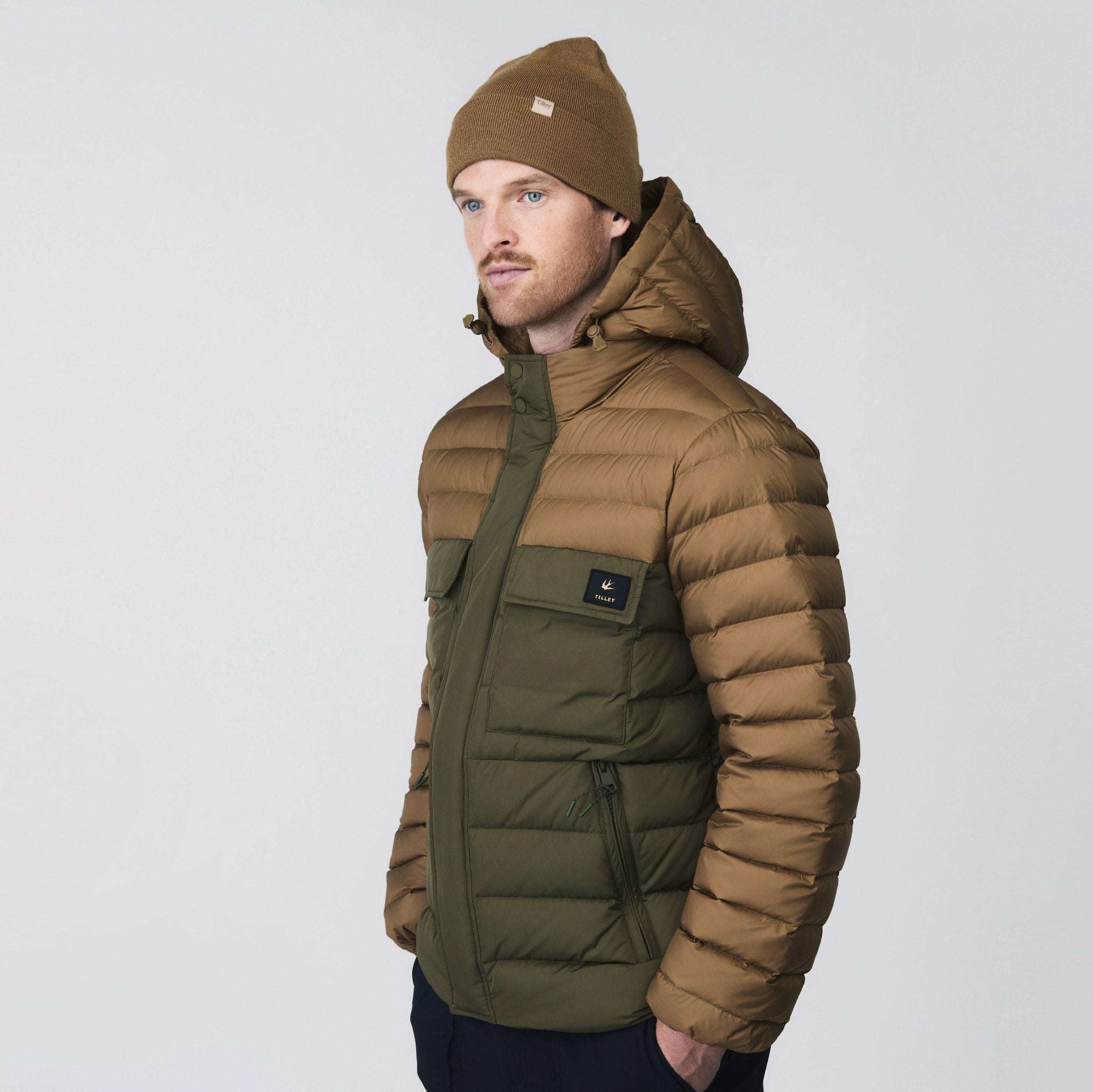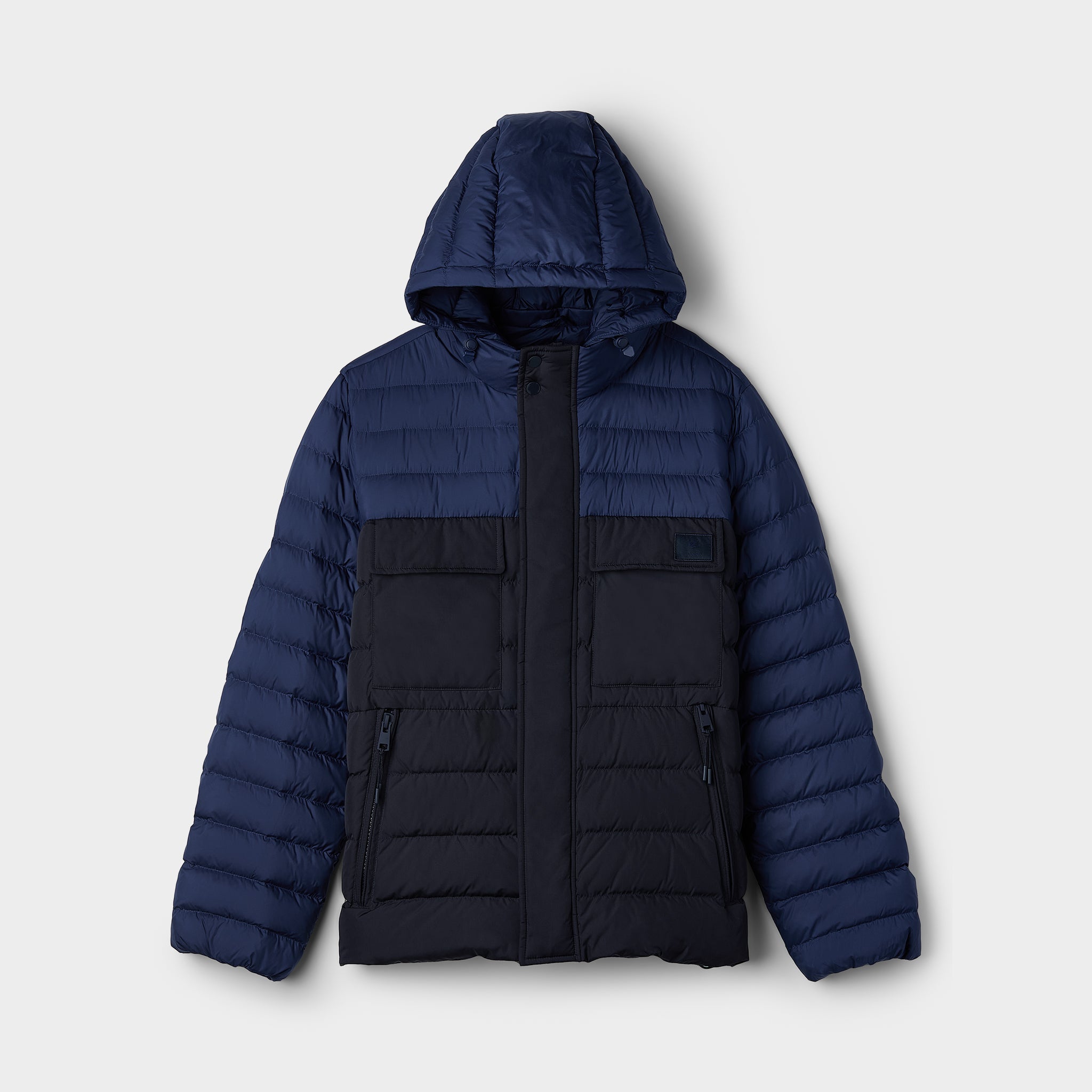 Wherever this puffer takes you, cold weather doesn’t stand a chance, with two tone colour blocking and functional features like responsibly sourced down fill, water repellent shell, stand collar and removable hood.