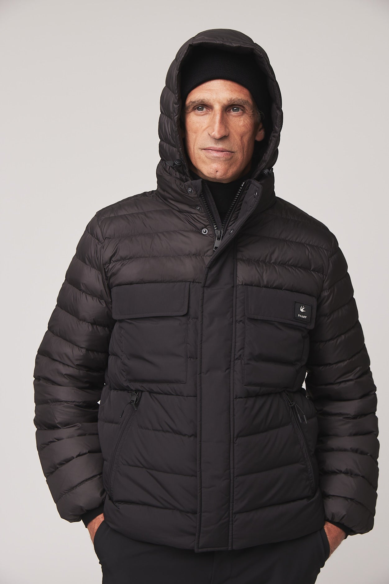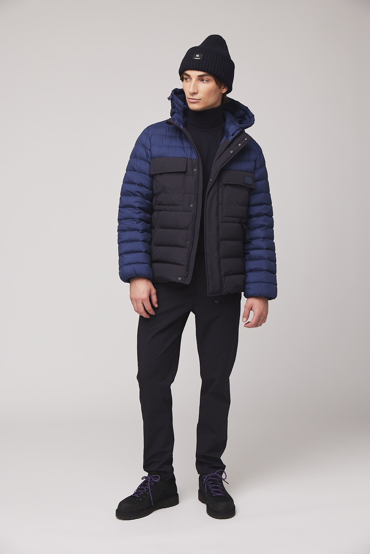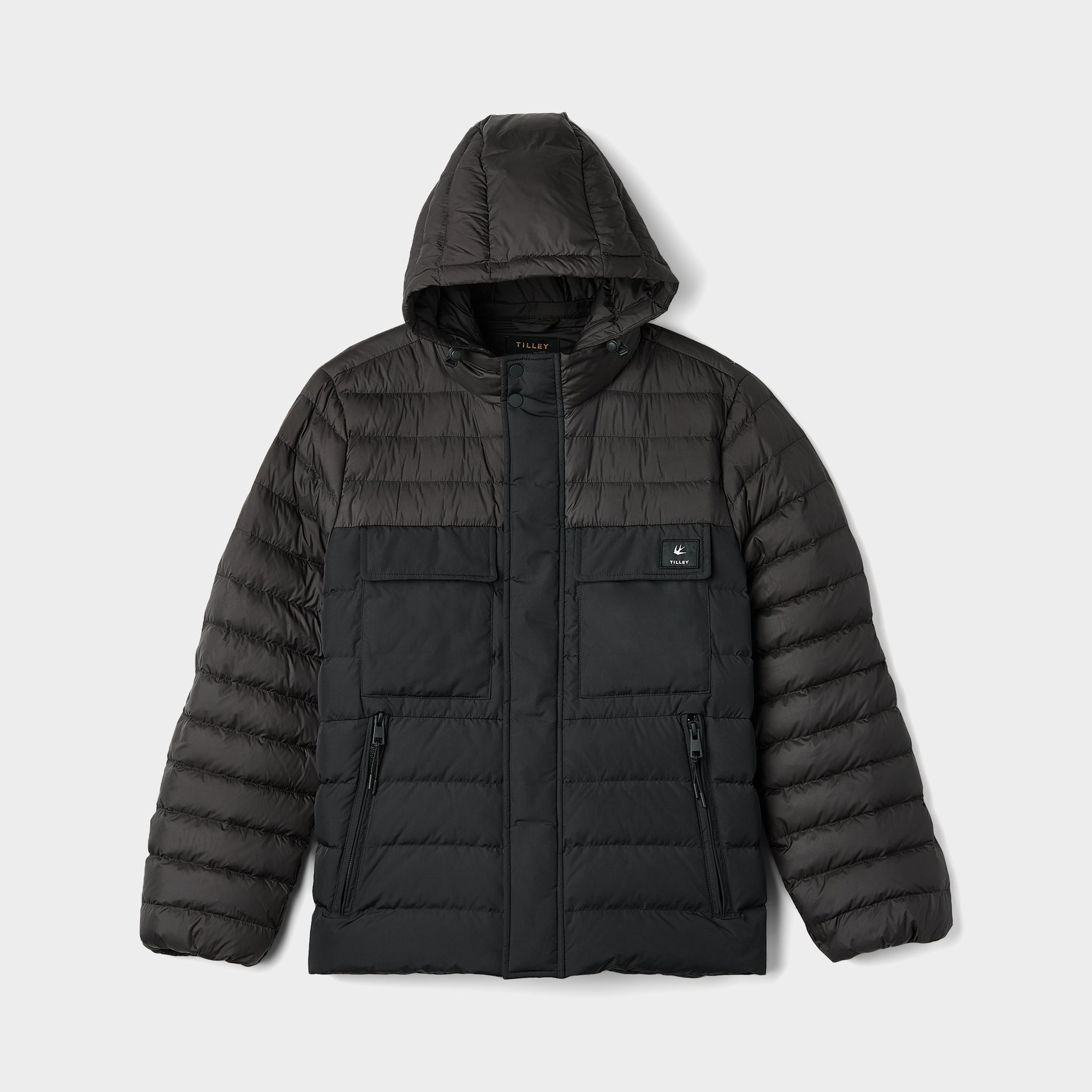 Wherever this puffer takes you, cold weather doesn’t stand a chance, with two tone colour blocking and functional features like responsibly sourced down fill, water repellent shell, stand collar and removable hood.