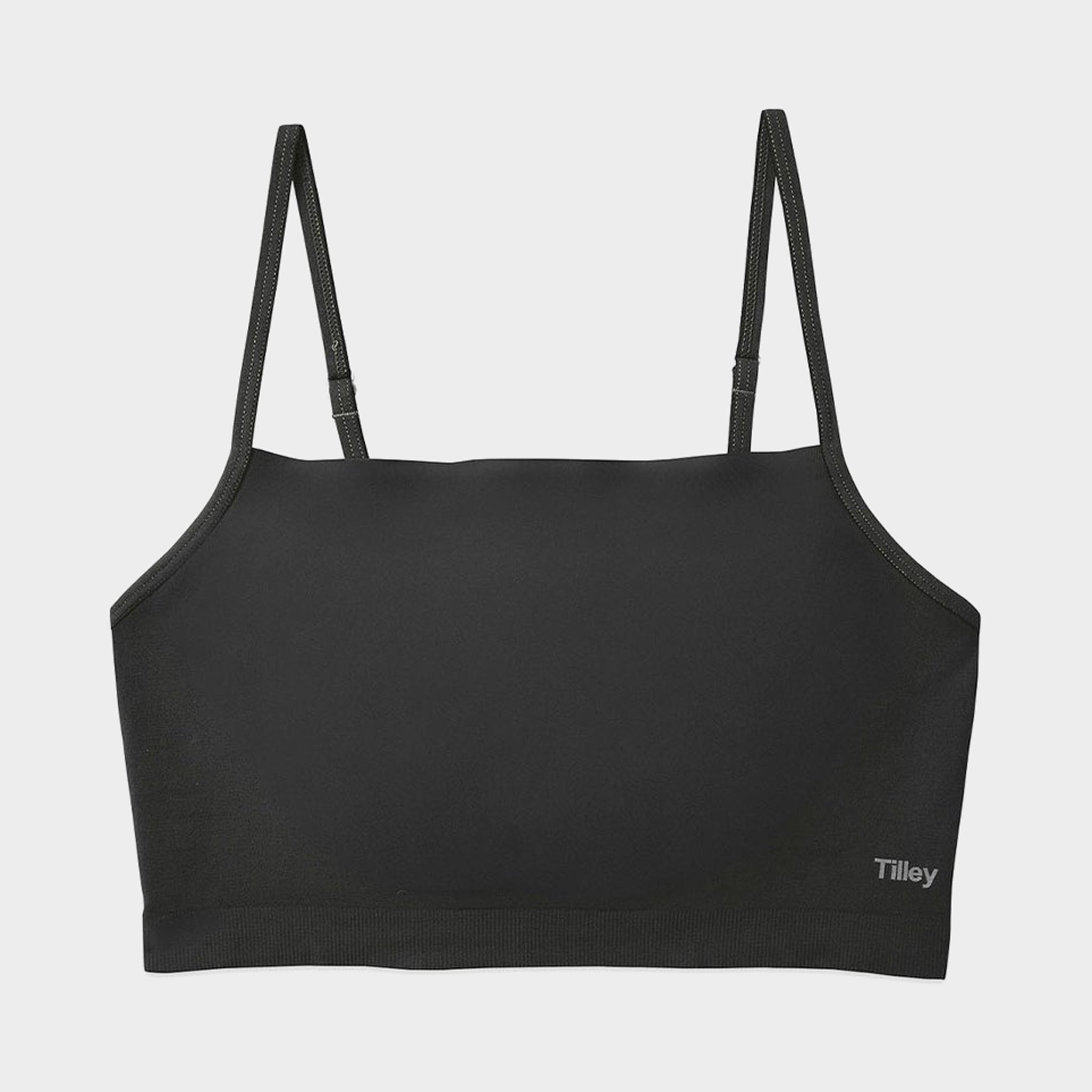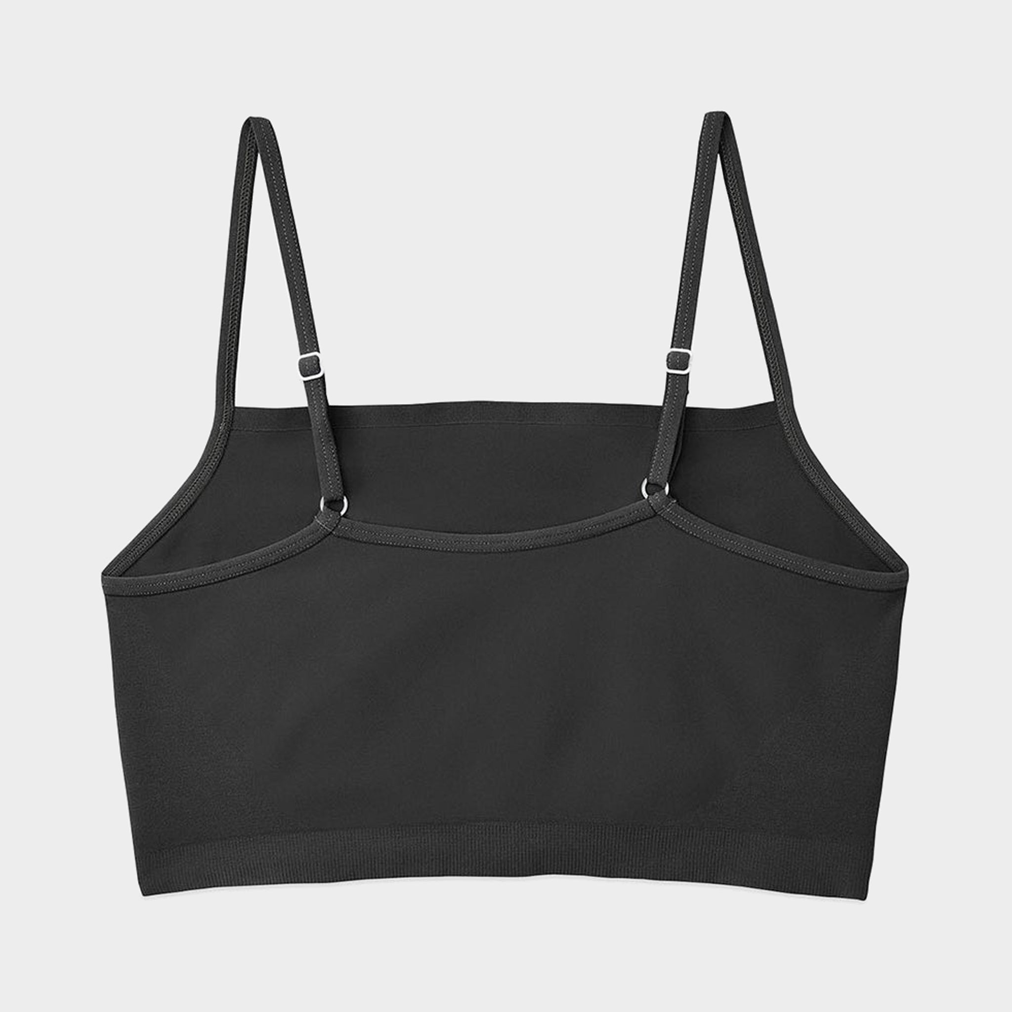 The spaghetti straps and shape of this comfortable cami bra blend athletics with elegance. The front scoop complements your neck and shoulders while the overall design provides breathable support.