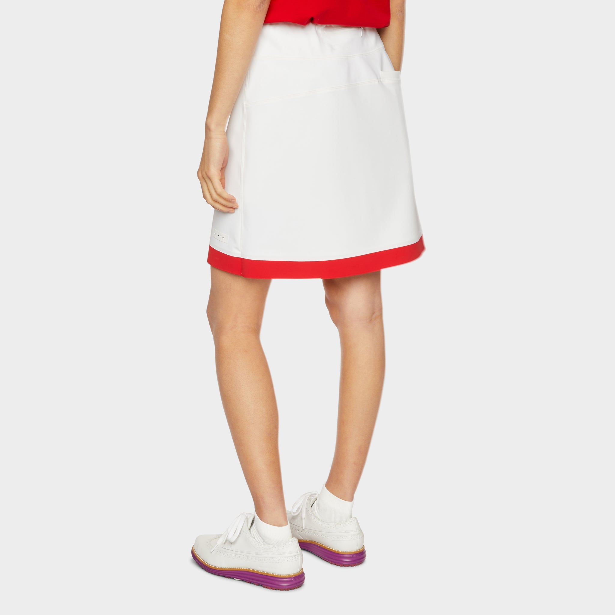 Our Contrast Stripe Skirt is the perfect blend of style and function. With a classic A-line silhouette , it’s designed to flatter women of all sizes. The built-in shorts provide added coverage and flexibility for movement. The skirt is accented with a hidden pocket, perfect for storing your tees or other small essentials while on the go. The waterproof welded seams add to the minimalistic look and feel, while ensuring that the skirt is durable and long-lasting. Crafted from four-way stretch nylon, this Contrast Stripe Skirt is incredibly comfortable and soft-to-the-touch, making it easy to wear all day long. The moisture-wicking fabric helps to keep you dry and cool, even during the most strenuous activities.