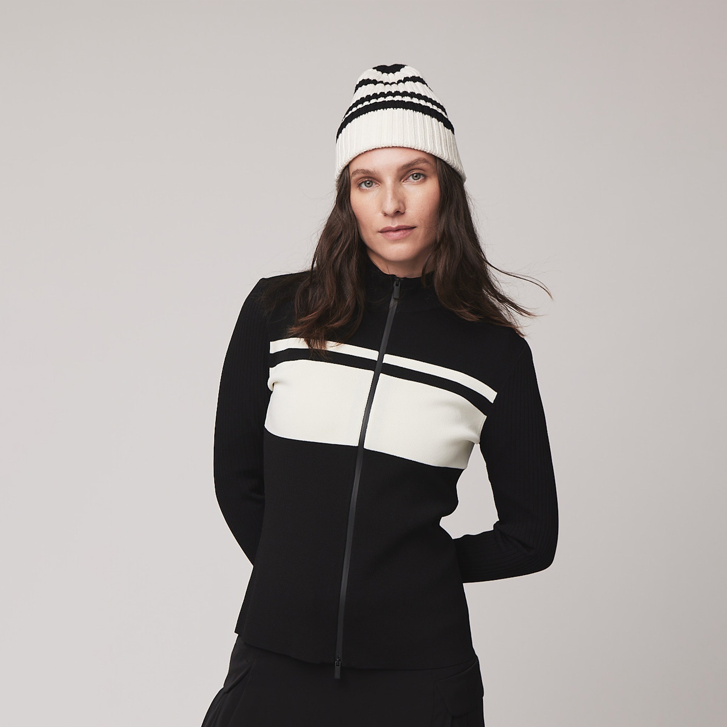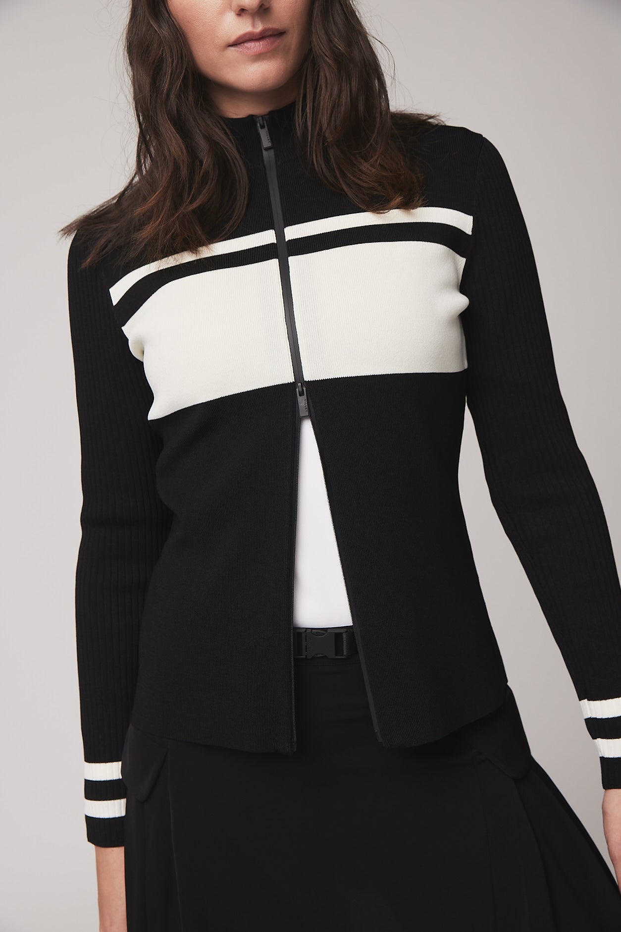 Long Sleeve Full Zip Stripe Sweater