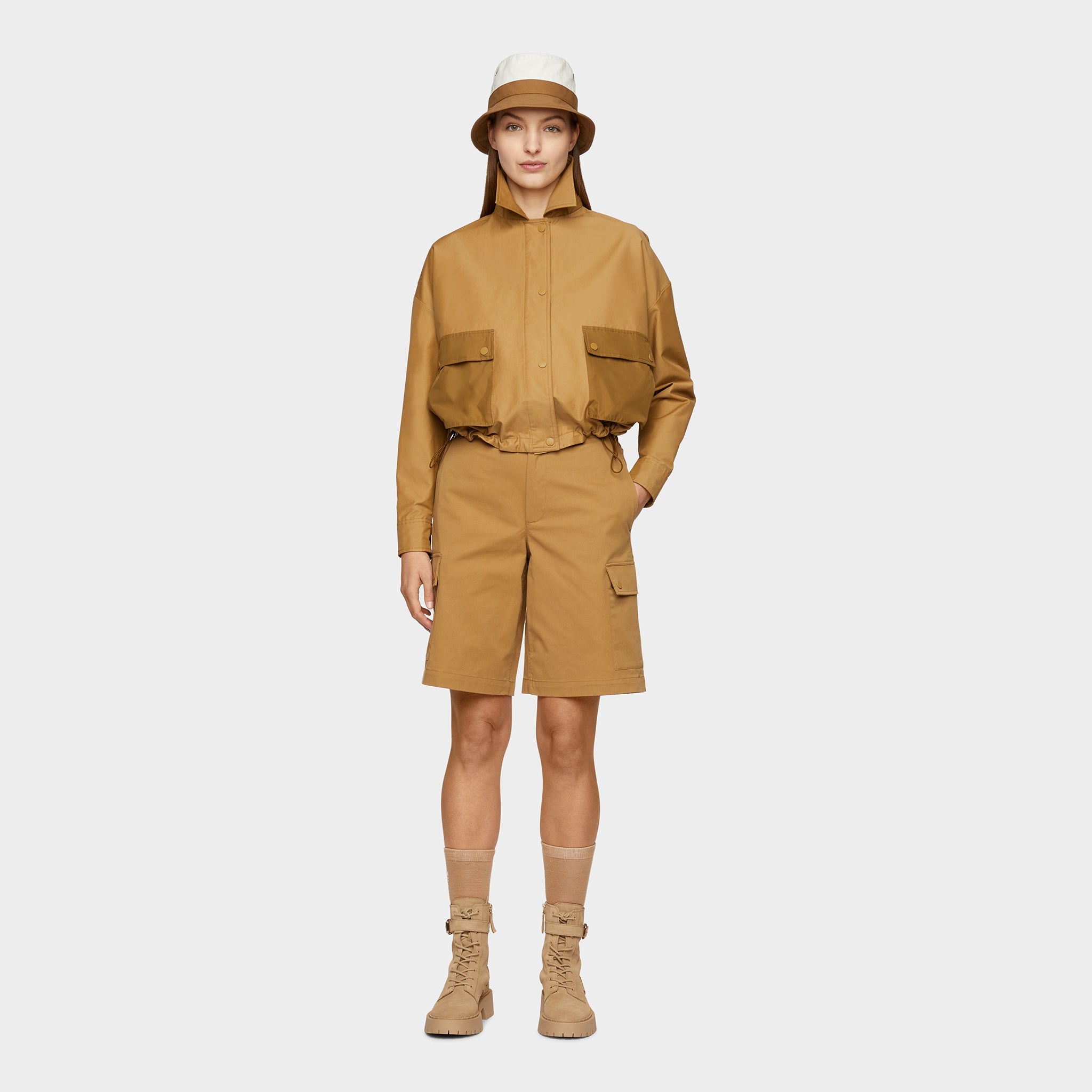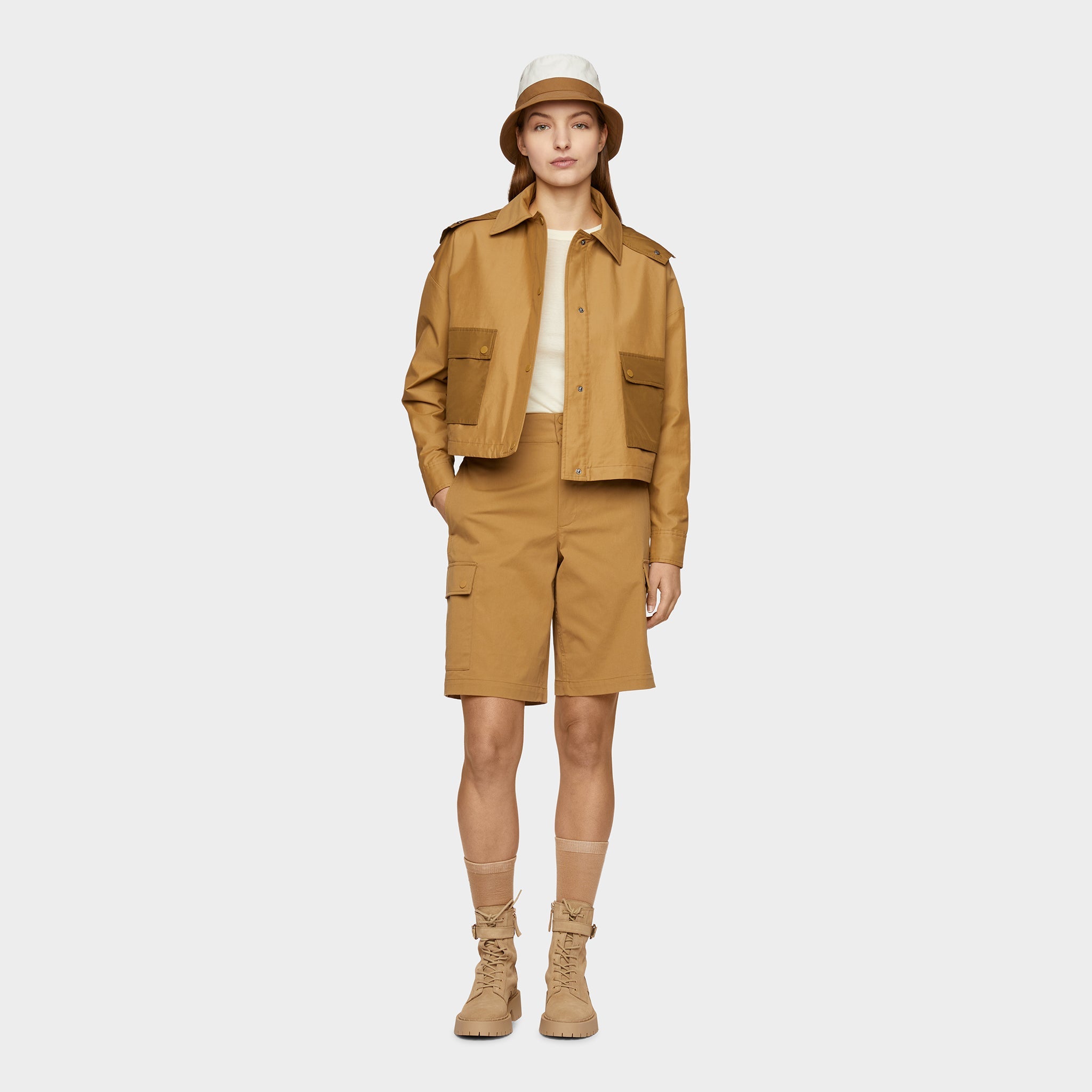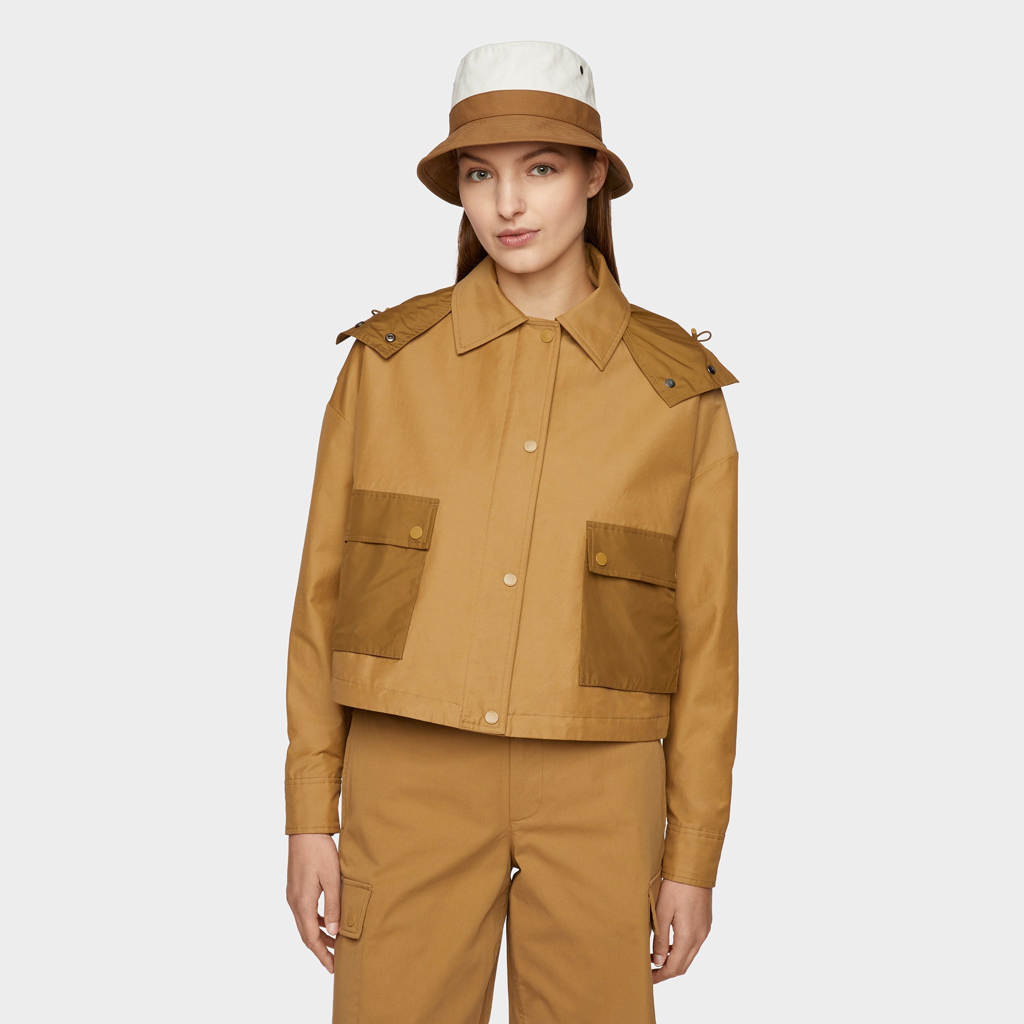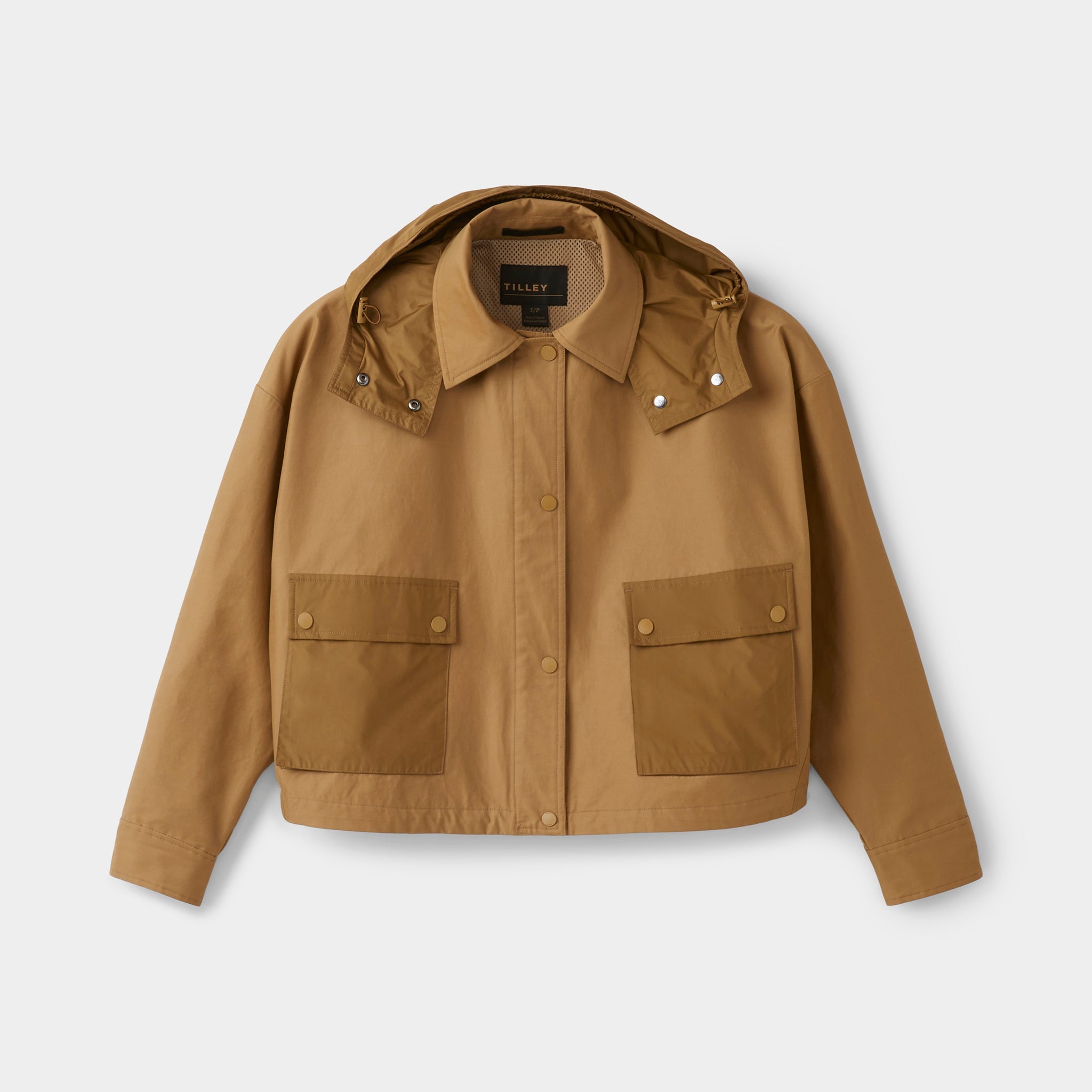 Inspired by our adventuring roots, our Utility Jacket has been reimagined in luxuriously soft Italian-made fabric that’s water repellent and wind resistant to protect you from high winds and light rain. The modern cropped silhouette features a removable nylon hood and our signature patch pockets with dual entry for ample storage.